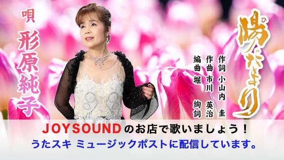 2022年3月5日(土)の 午前10時からキョクナビ(リモコン端末)で歌手名:かたはらじゅんこ、あるいは曲名:ひだまり で選曲可能となる予定です。