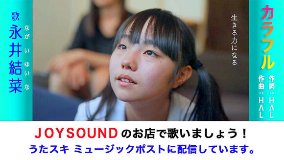 2022年7月16日(土)の 午前10時からキョクナビ(リモコン端末)で歌手名:ながいゆいな、あるいは曲名:からふるほんにんえいぞう で選曲可能となる予定です。