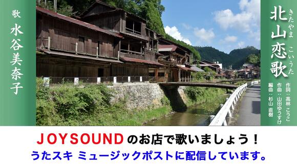 2023年5月27日(土)の 午前10時からキョクナビ(リモコン端末)で歌手名:みずたにみなこ、あるいは曲名:きたやまこいうた で選曲可能となる予定です。