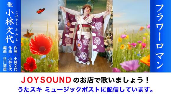 2023年7月22日(土)の 午前10時からキョクナビ(リモコン端末)で歌手名:こばやしふみよ、あるいは曲名:ふらわーろまんほんにんえいぞう で選曲可能となる予定です。