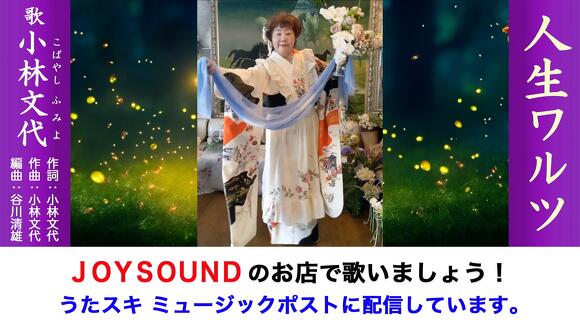 2023年8月5日(土)の 午前10時からキョクナビ(リモコン端末)で歌手名:こばやしふみよ、あるいは曲名:じんせいわるつほんにんえいぞう で選曲可能となる予定です。