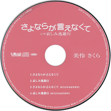 2023年9月23日(土)の 午前10時からキョクナビ(リモコン端末)で歌手名:みれいさくら、あるいは曲名:かなしみとうひこう で選曲可能となる予定です。