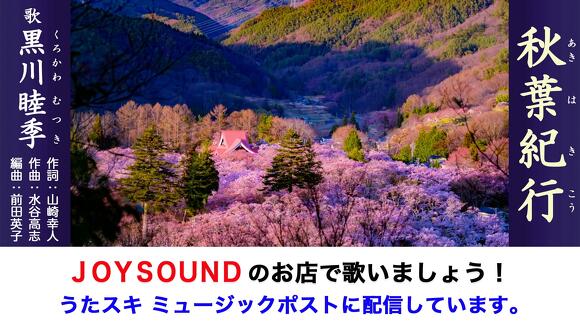 2023年10月7日(土)の 午前10時からキョクナビ(リモコン端末)で歌手名:くろかわむつき、あるいは曲名:あきはきこう で選曲可能となる予定です。