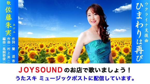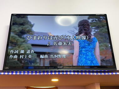2023年12月9日(土)の 午前10時からキョクナビ(リモコン端末)で歌手名:さとうあけみ、あるいは曲名:ひまわりはふたたびほんにんえいぞう で選曲可能となる予定です。