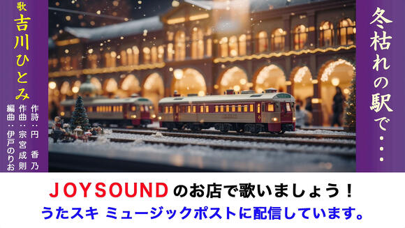 2023年12月23日(土)の 午前10時からキョクナビ(リモコン端末)で歌手名:よしかわひとみ、あるいは曲名:ふゆがれのえきでほんにんえいぞう で選曲可能となる予定です。