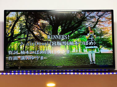 2024年2月17日(土)の 午前10時からキョクナビ(リモコン端末)で歌手名:しりとり みやさかゆき ゆずきつばめ、あるいは曲名:うぃなーず で選曲可能となる予定です。