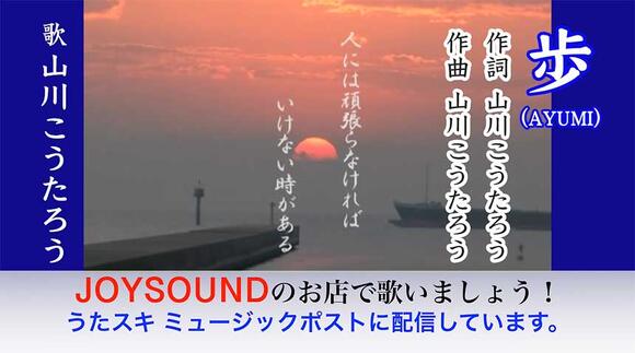 2021年1月9日(土)の 午前10時からキョクナビ(リモコン端末)で歌手名:やまかわこうたろう、あるいは曲名:あゆみ で選曲可能となる予定です。
