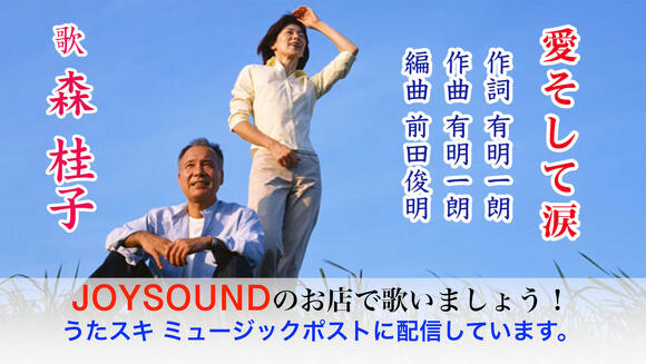 2021年2月27日(土)の 午前10時からキョクナビ(リモコン端末)で歌手名:もりけいこ、あるいは曲名:あいそしてなみだ で選曲可能となる予定です。