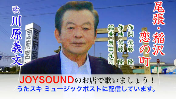2021年3月6日(土)の 午前10時からキョクナビ(リモコン端末)で歌手名:かわはらよしふみ、あるいは曲名:おわりいなざわこいのまち で選曲可能となる予定です。