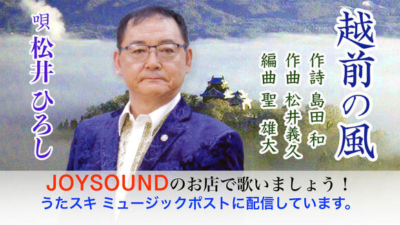 2021年3月20日(土)の 午前10時からキョクナビ(リモコン端末)で歌手名:まついひろし、あるいは曲名:えちぜんのかぜ で選曲可能となる予定です。