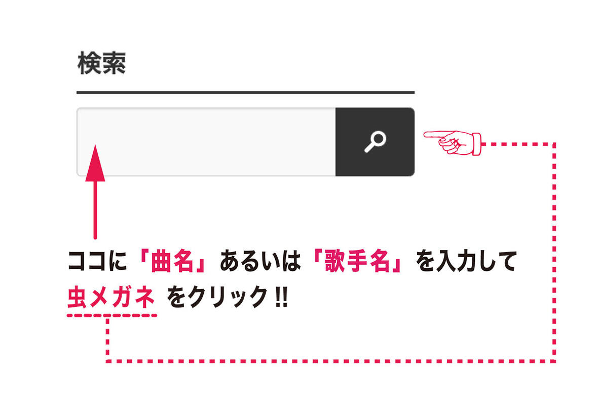 2024年11月17日(日) お知らせ 検索に関して キーワード検索のお薦め ご自身のカラオケ配信作品を見つけるのに「タグ検索」が便利ですが、たくさんの「タグ」からご自身の「タグ」を見つけるのは結構大変だと思います。 そこでキーワード検索をお薦めします。 検索窓に「曲名」あるいは「歌手名」を入力して「虫メガネ」をクリックすると簡単にご自身の配信作品を見つけることができます。 ぜひキーワード検索をご活用下さい。 キーワード検索