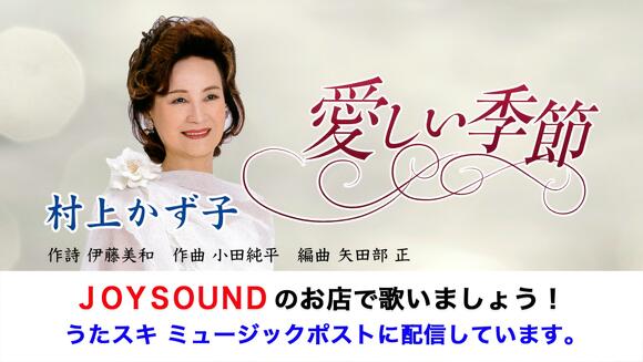 ○ 2022年6月11日(土)の 午前10時からキョクナビ(リモコン端末)で歌手名:むらかみかずこ、あるいは曲名:いとしいきせつ で選曲可能となる予定です。