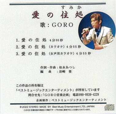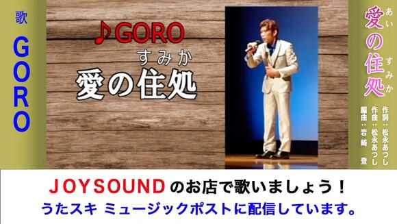 2022年10月29日(土)の 午前10時からキョクナビ(リモコン端末)で歌手名:ごろー、あるいは曲名:あいのすみか で選曲可能となる予定です。