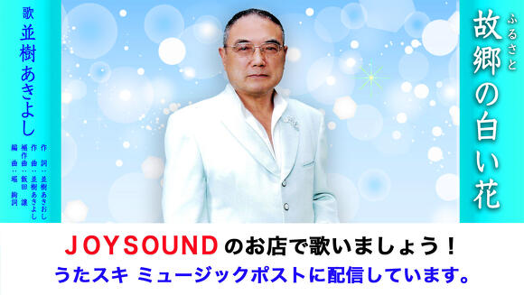 2022年11月26日(土)の 午前10時からキョクナビ(リモコン端末)で歌手名:なみきあきよし、あるいは曲名:ふるさとのしろいはな で選曲可能となる予定です。