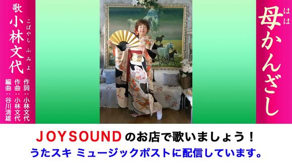 2023年7月8日(土)の 午前10時からキョクナビ(リモコン端末)で歌手名:こばやしふみよ、あるいは曲名:ははかんざしほんにんえいぞう で選曲可能となる予定です。