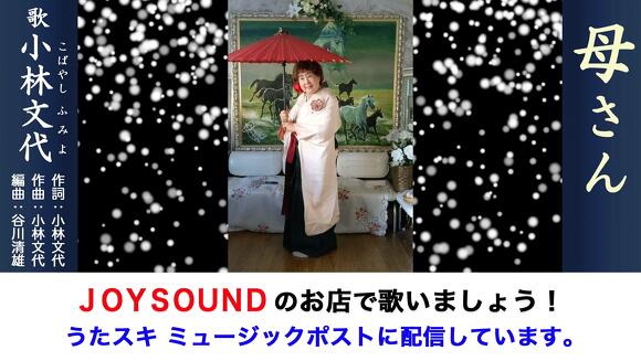 2023年10月7日(土)の 午前10時からキョクナビ(リモコン端末)で歌手名:こばやしふみよ、あるいは曲名:かあさんほんにんえいぞう で選曲可能となる予定です。