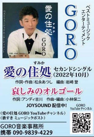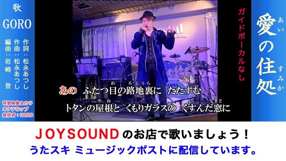 2024年6月8日(土)の 午前10時からキョクナビ(リモコン端末)で歌手名:ごろー、あるいは曲名:あいのすみかほんにんえいぞう で選曲可能となる予定です。