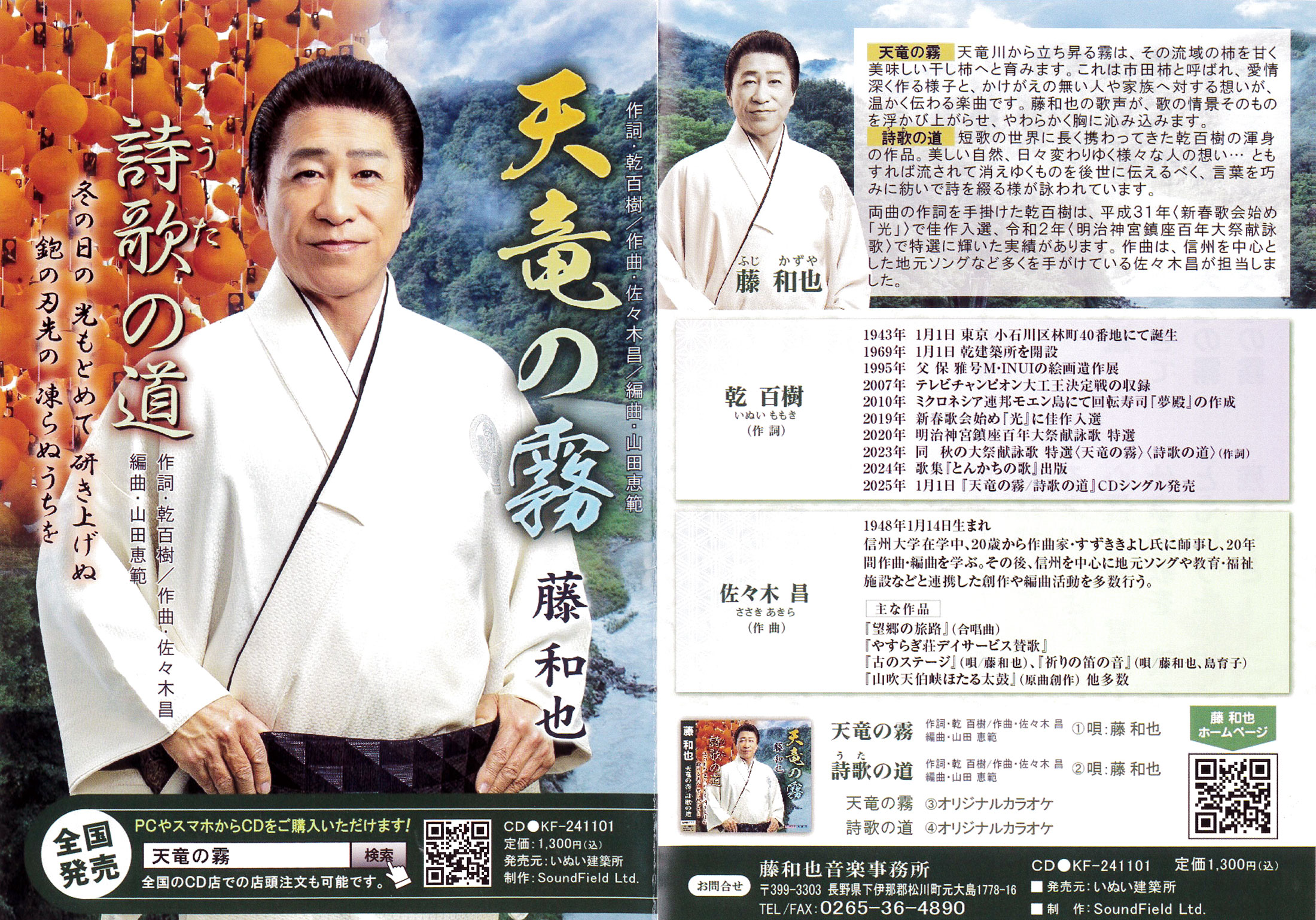 藤和也 ファン待望のニュー・シングル!『天竜の霧/詩歌(うた)の道』