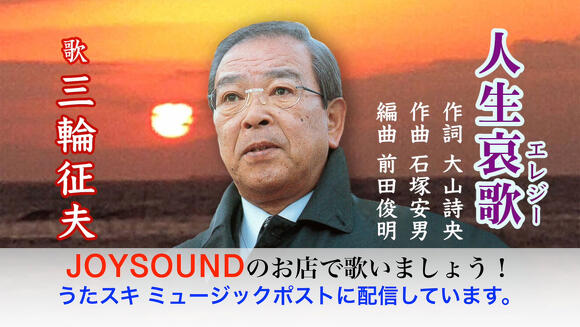 10月24日(土)の 午前10時からキョクナビ(リモコン端末)で歌手名:みわまさお、あるいは曲名:じんせいえれじー で選曲可能となる予定です。