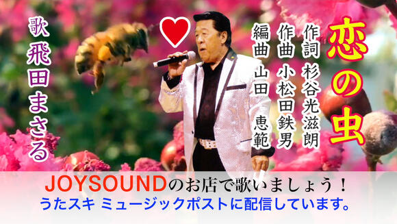 2021年1月9日(土)の 午前10時からキョクナビ(リモコン端末)で歌手名:ひだまさる、あるいは曲名:こいのむし で選曲可能となる予定です。