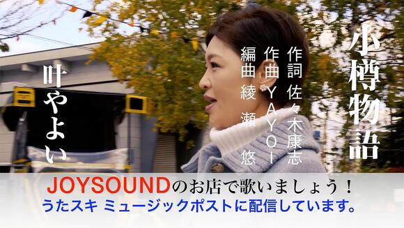 2021年8月7日(土)の 午前10時からキョクナビ(リモコン端末)で歌手名:かのうやよい、あるいは曲名:おたるものがたりほんにんえいぞう で選曲可能となる予定です。