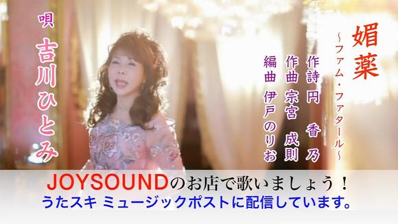 2021年9月25日(土)の 午前10時からキョクナビ(リモコン端末)で歌手名:よしかわひとみ、あるいは曲名:びやくふぁむふぁたーるほんにんえいぞう で選曲可能となる予定です。