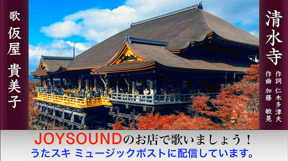 2021年12月4日(土)の 午前10時からキョクナビ(リモコン端末)で歌手名:かりやきみこ、あるいは曲名:きよみずでら で選曲可能となる予定です。