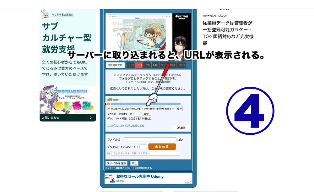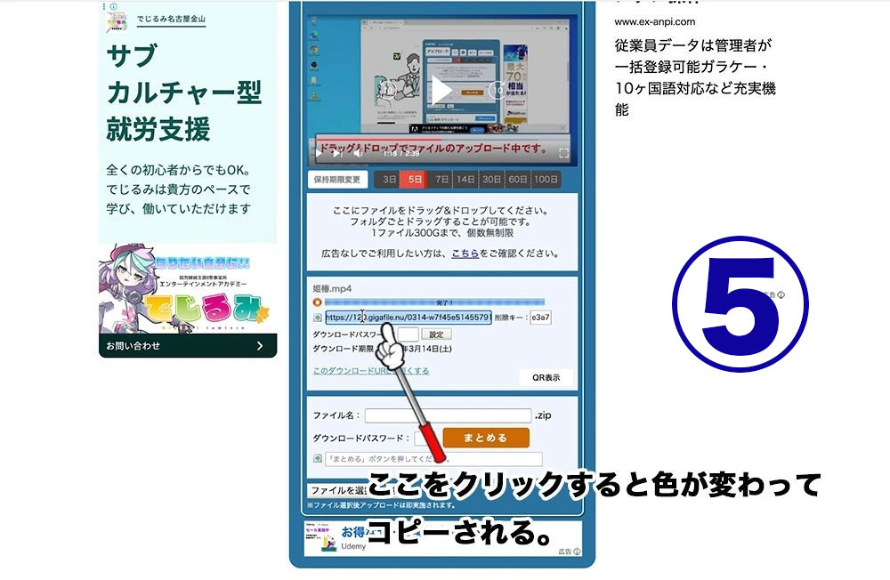 ② アップロードが完了すると、ダウンロード用のURLが表示されます。